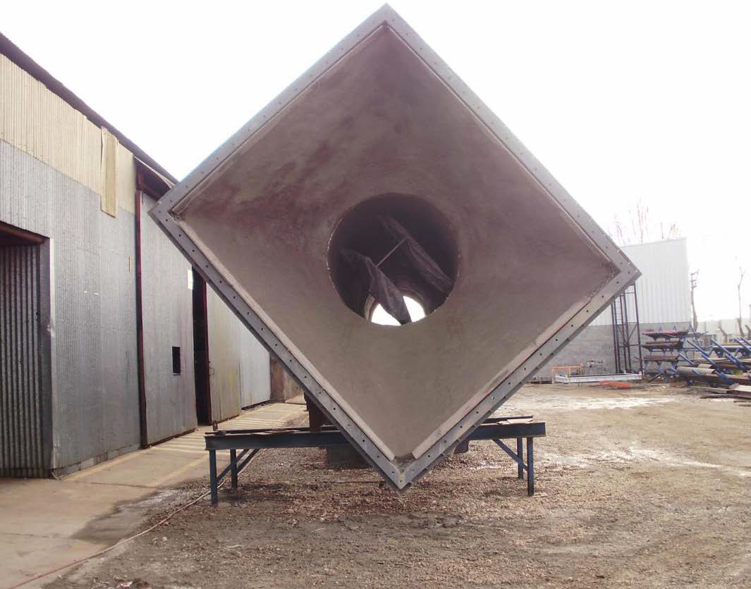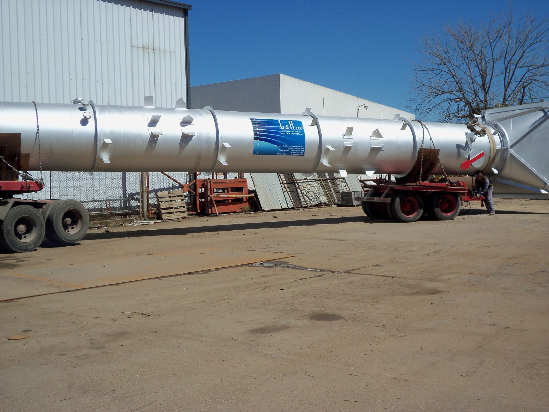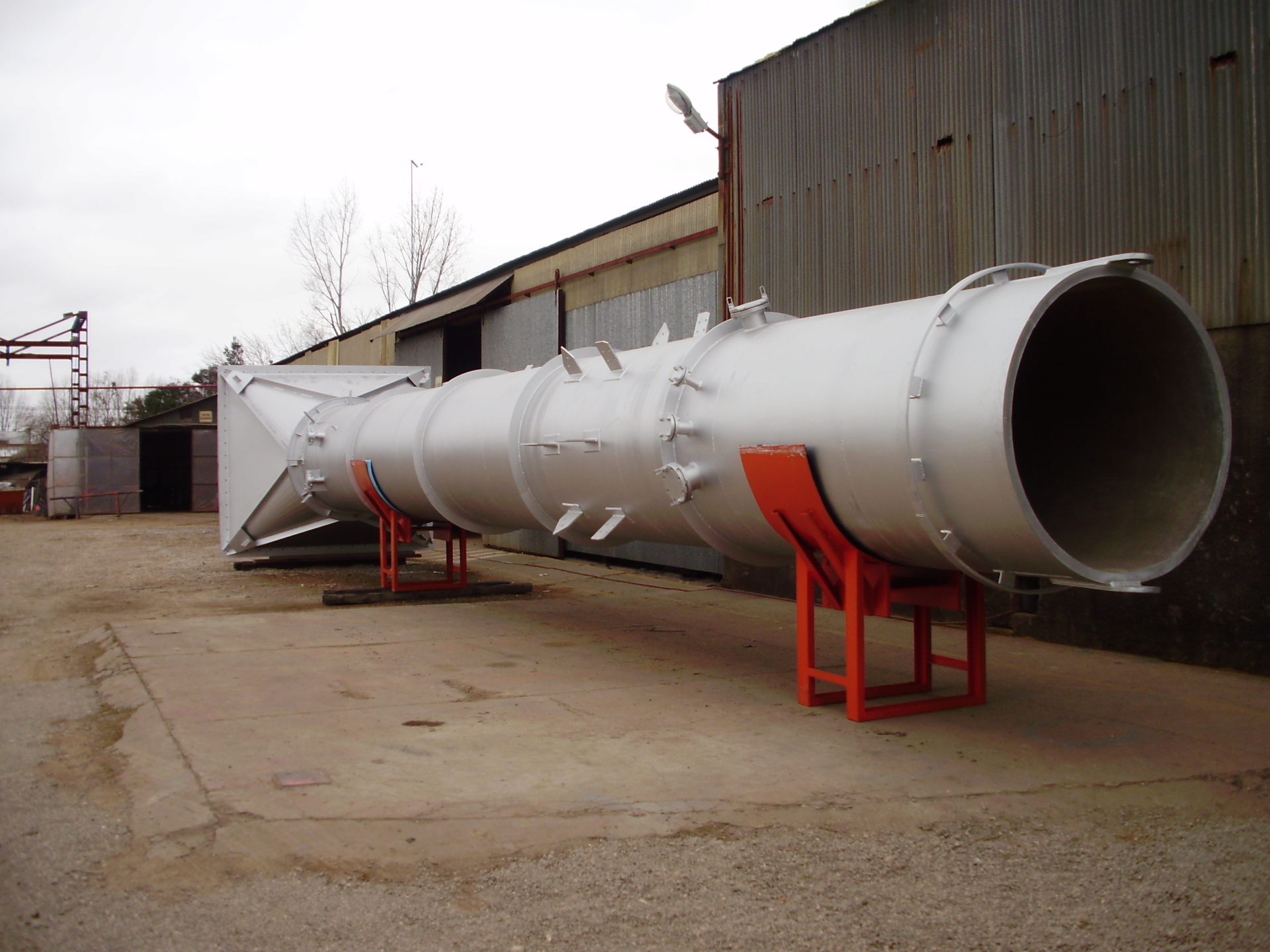 Fabricación de cuerpo cilíndrico y transición, la chimenea tiene un diámetro de 1,6 m y una longitud total de 16,00 m.