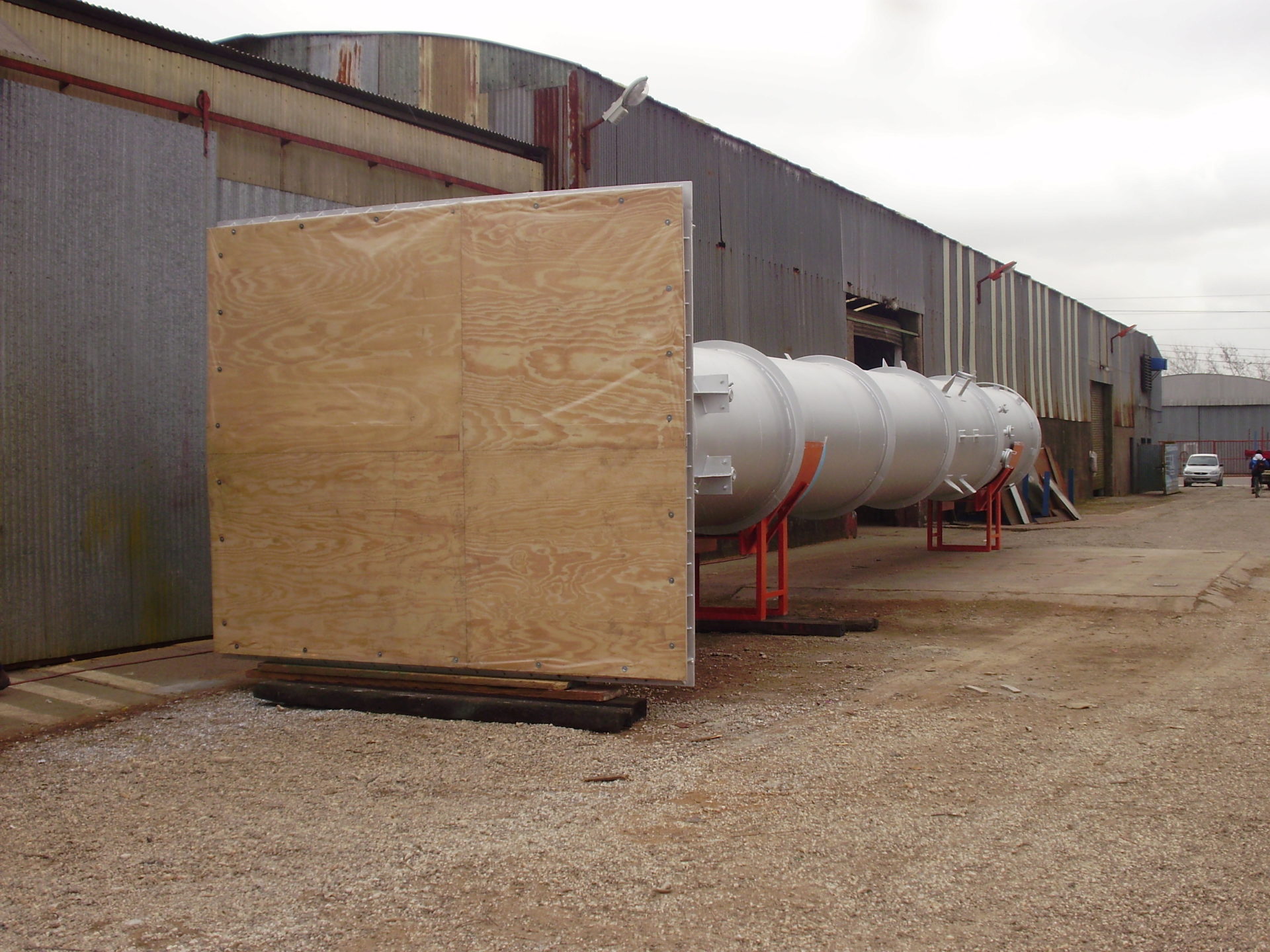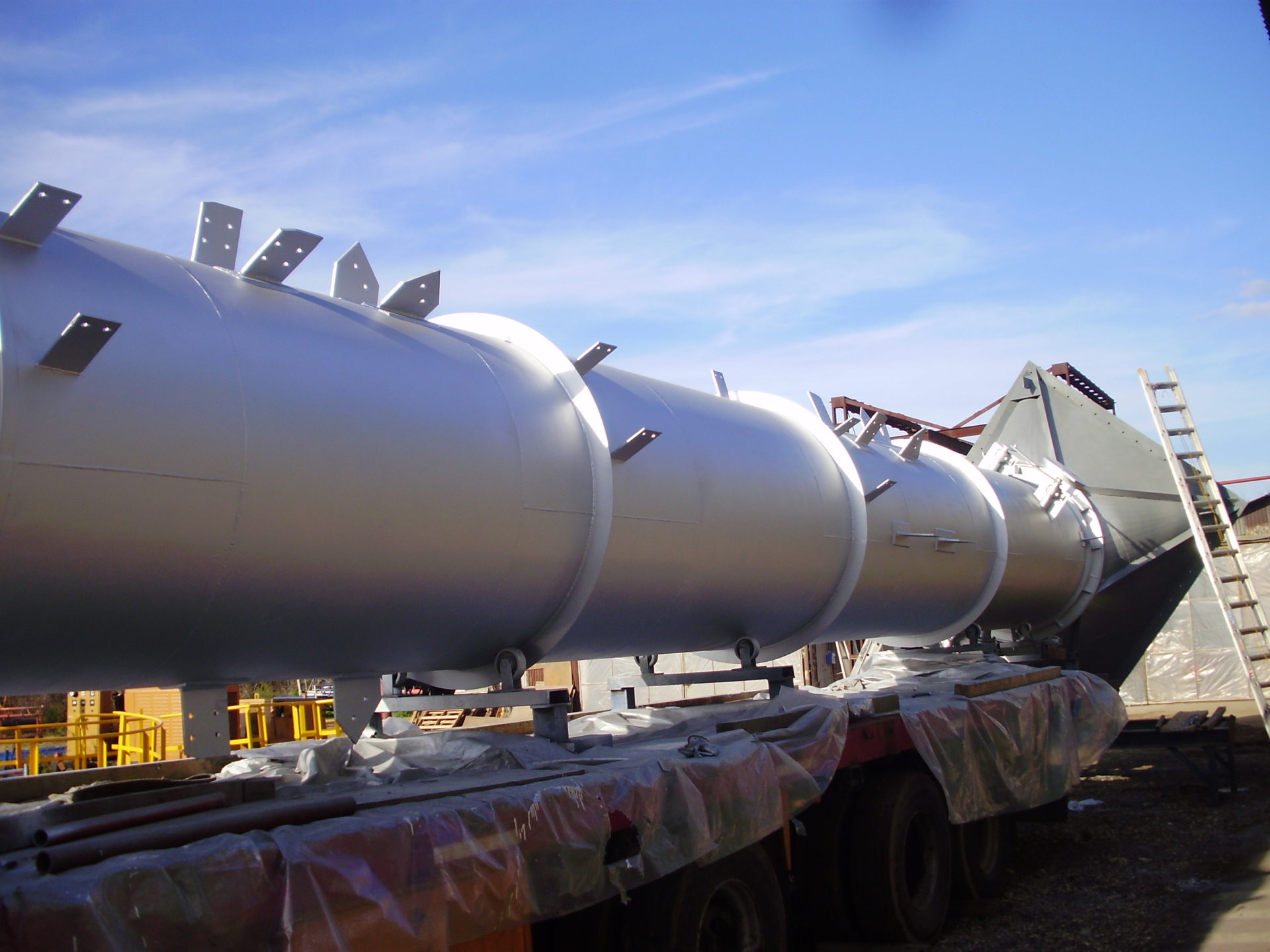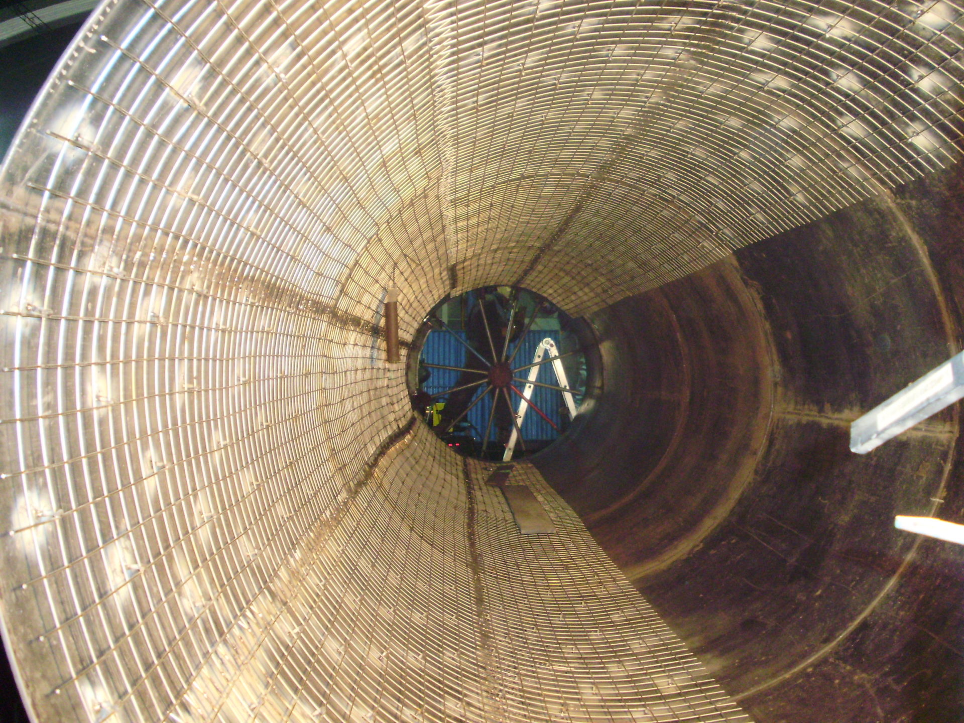 Fabricación de cuerpo cilíndrico y transición, la chimenea tiene un diámetro de 1,6 m y una longitud total de 16,00 m.