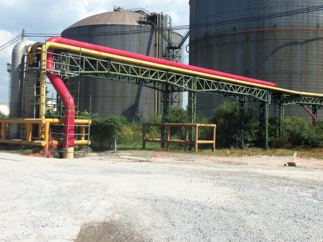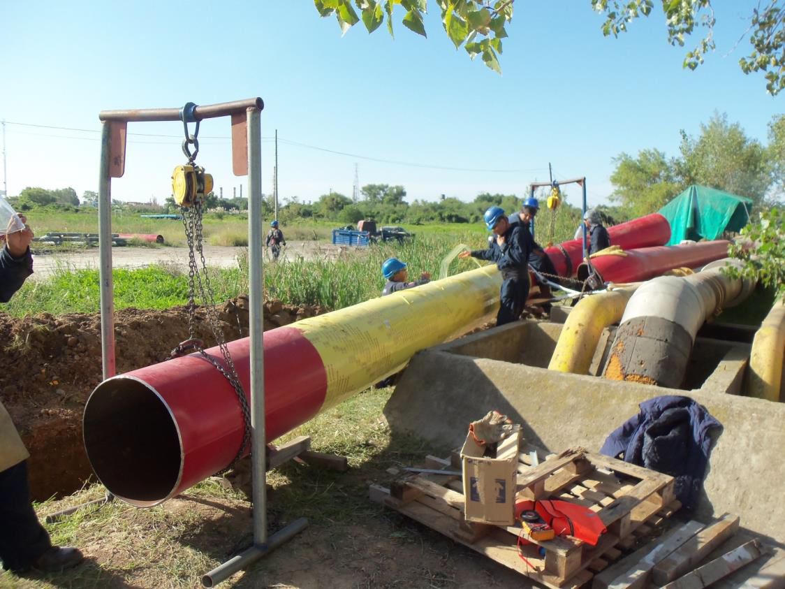 Construcción y montaje de línea de 24”, desde Terminal de Carga hasta planta GLP, aproximadamente 1300 m. de longitud, con ampliación de sleepers y pórticos para cruces de calles.