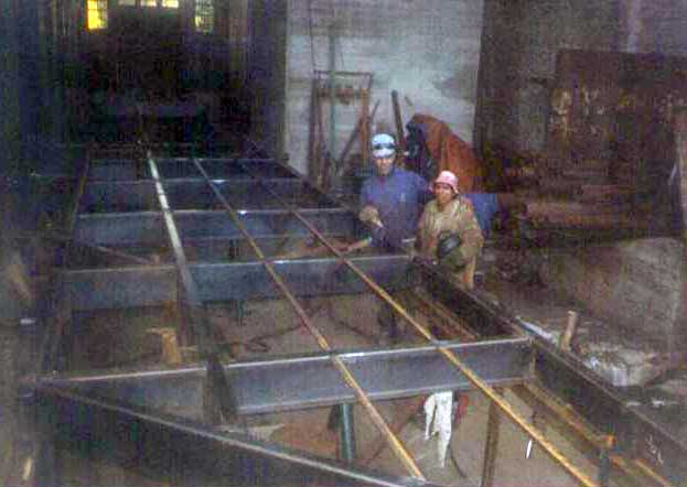 Construcción de cajones tipo puente grúa, para formar una estructura rígida de Planchada de 16 x 4 mts.