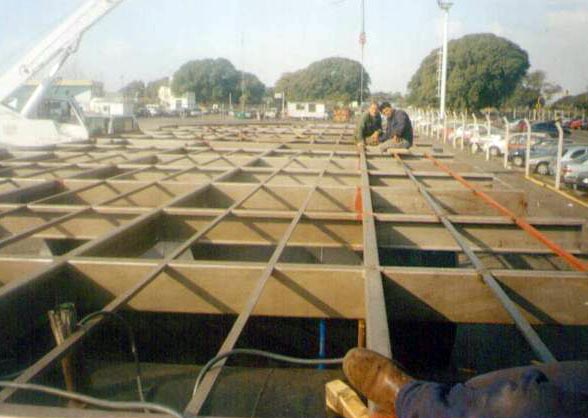 Armado de estructura de 6 x 24 mts, sobre tanques de flotación.