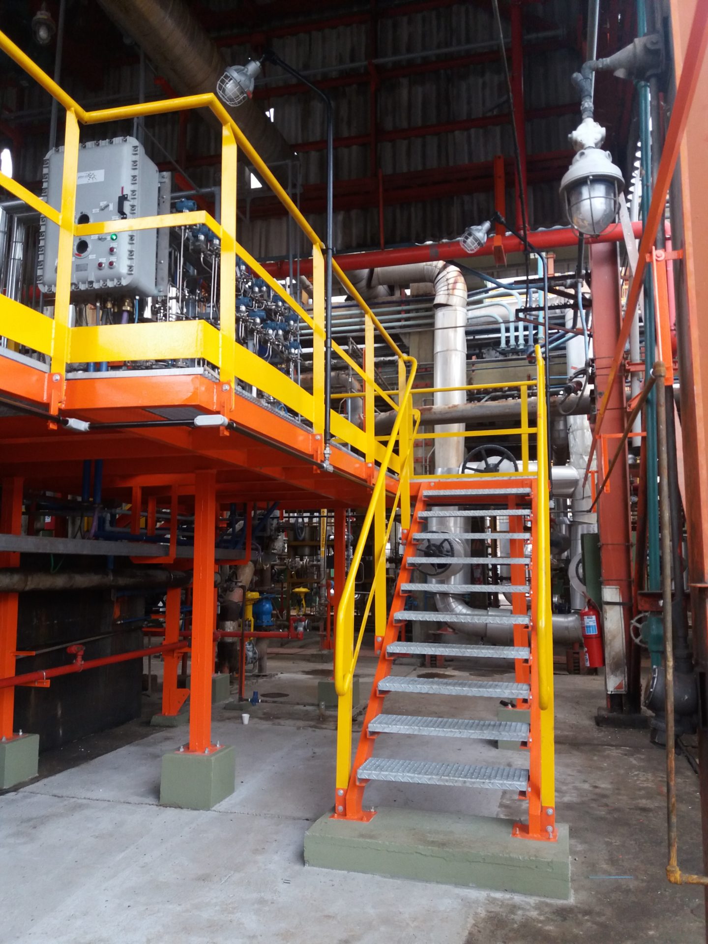 Se realizaron plataformas, barandas, escaleras, bastidores. Se realizaron extensiones de plataformas existentes y nuevos soportes ya que los existentes cumplen su función.