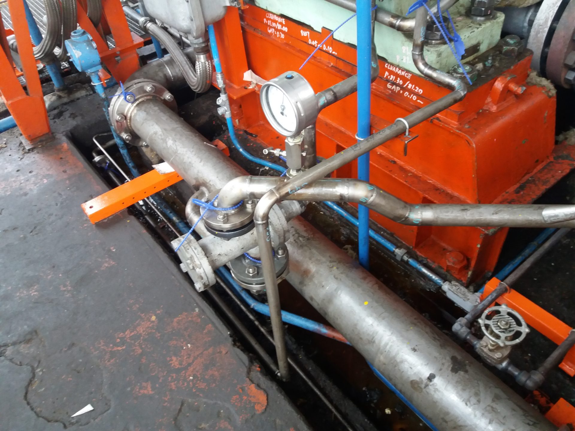 Compresor JC-1913: Se realizaron la prefabricación de las líneas nuevas, que vinculan el nuevo compresor con las líneas existentes. En el transcurso del montaje, se encontraron muchas modificaciones respecto a la ingeniería apta para construcción, dada por el cliente, por lo que se tuvo que rehacer un total de 1500 pulgadas. Los materiales que se utilizaron son de Acero Inoxidable y Acero al Carbono. Se realizaron un 100 de ensayos no destructivos. Realización de Tanque de almacenamiento de aceite, con sus derivaciones y líneas. También se realizó un flashing en el total de las líneas. Se realizo una nueva platea de hormigón para la colocación y extensión de una plataforma existente, así como también la soportaría para cada una de las líneas.