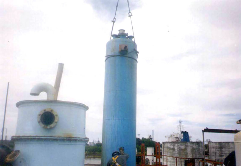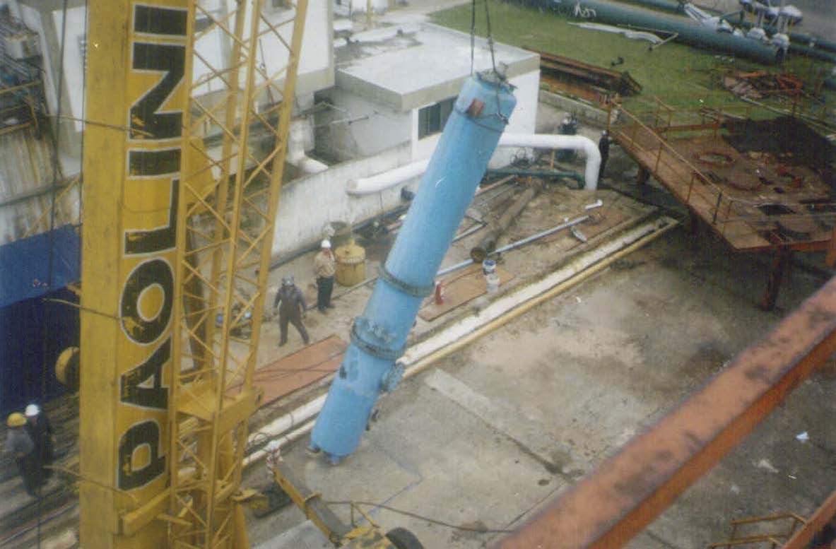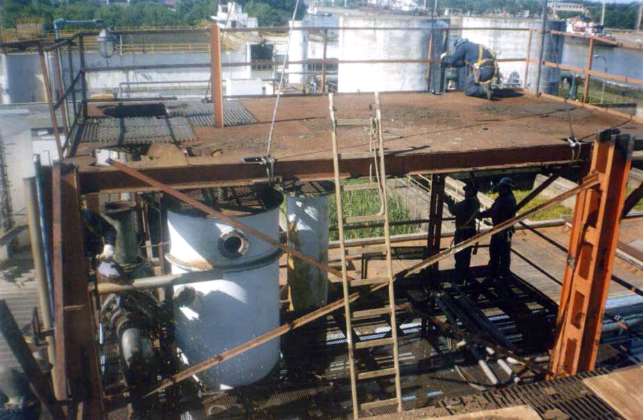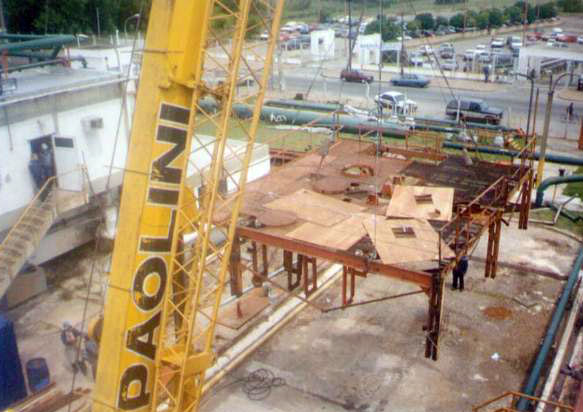 Desmontaje de la planta en su totalidad por su deterioro. Equipos y cañerías. Prefabricado y montaje de soporte tipo cristo de perfil Grey 18, con varios niveles para Cañerías existentes y nuevas. Realización de prueba Hidráulica. Interconexión a líneas existentes. Armado de bandejas de acero inoxidable y posterior montaje para cableado, Para la reubicación de la nueva planta.