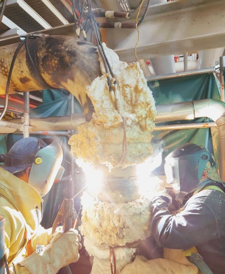 Precalentado para soldadura, soldadura de costuras afectadas.